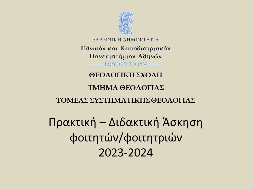 ΓΙΑ ΣΥΝΕΡΓΑΣΙΑ ΣΤΟ ΠΛΑΙΣΙΟ ΤΗΣ ΠΡΑΚΤΙΚΗΣ-ΔΙΔΑΚΤΙΚΗΣ ΑΣΚΗΣΗΣ ΦΟΙΤΗΤΩΝ/ΦΟΙΤΗΤΡΙΩΝ ΤΟΥ ΤΜ. ΘΕΟΛΟΓΙΑΣ Ε.Κ.Π.Α.
