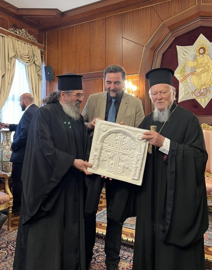 Δώρο της ομάδας φοιτητών και καθηγητών προς τον Οικουμενικό Πατριάρχη (Αντίγραφο πρωτοχριστιανικού σταυρού από το Βυζαντινό Μουσείο Αθηνών)