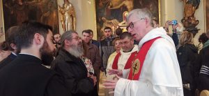 Η φιλόξενη συνάντηση-συζήτηση με τον Μητροπολίτη Αυστρίας, έξαρχο Ουγγαρίας και Μεσευρώπης κ. Αρσένιο, σχετικά με το Μάθημα των Θρησκευτικών στην Αυστρία αλλά και την προοπτική απασχόλησης εκπαιδευτικών από την Ελλάδα στην Αυστρία, η οποία πραγματοποιήθηκε μετά τον κοινό αναστάσιμο εκκλησιασμό στον Μητροπολιτικό Ναό του Αγίου Γεωργίου.